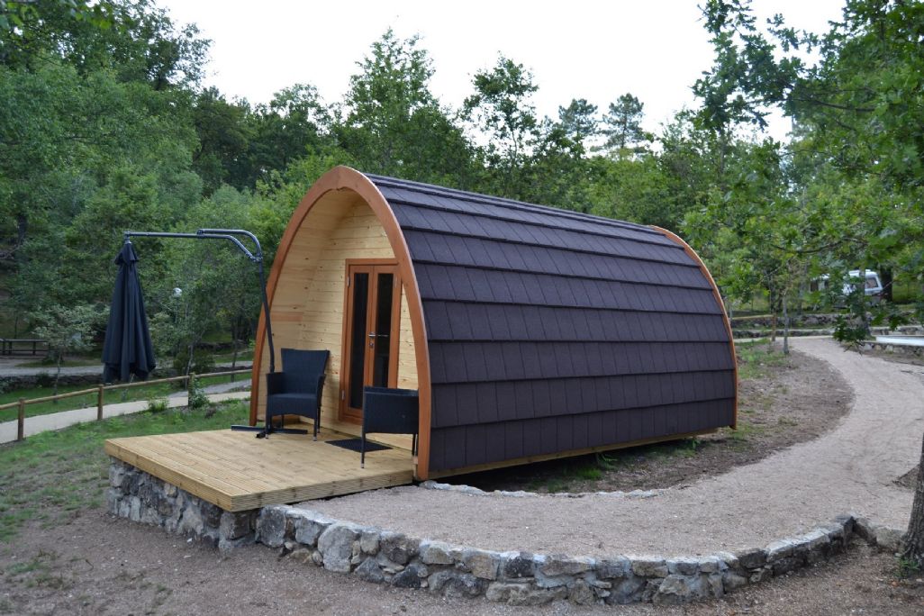 Las cabañas están equipadas con dormitorio y baño, porche, ropa de cama, toallas y calefacción. Destacamos el diseño innovador y atractivo, que encaja perfectamente en el paisaje.