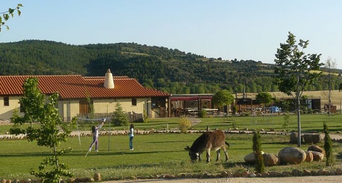 HAY CARTELES EN LA CARRETERA (CL110 - BU 903) QUE ANUNCIAN "CENTRO DE TURISMO RURAL" Y UN CARTEL GRANDE DE COLOR AZUL CON UNA JARRA DE CERVEZA AL PIE DEL CAMINO DE ZAHORRA. EL CTR ESTA A 500 M POR ESE CAMINO.